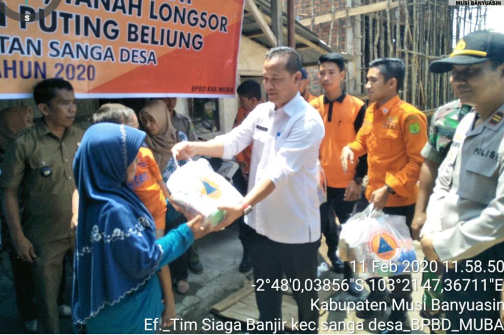 Kepala BPBD Kabupaten Muba, Indita Purnama SSos MSi melaporkan bahwa BPBD Muba telah memberikan bantuan 40 paket sembako kepada warga yang terkena dampak banjir berjumlah 20 KK, dan secara simbolis diterima oleh Bapak Yono warga Trans Sp3 jud 1 Kecamatan Sanga Desa.