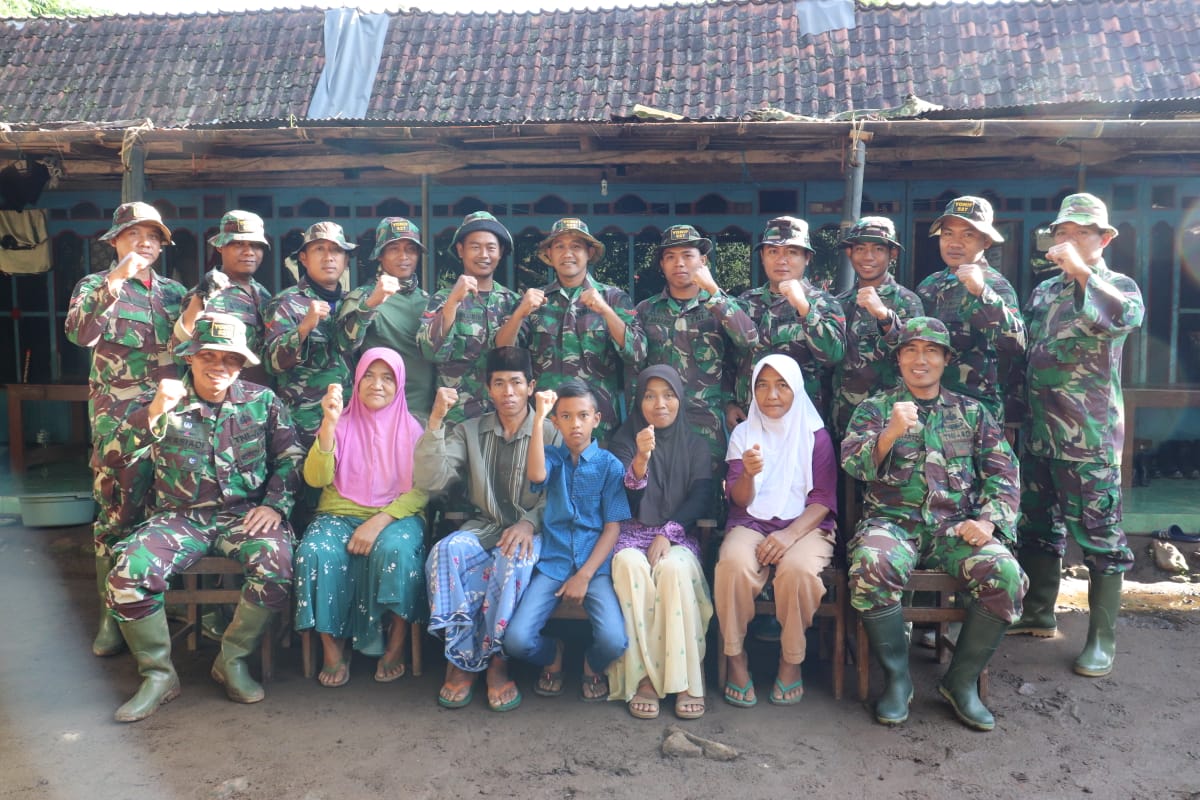 Tampak terlihat beberapa anggota Satgas TMMD, yang tinggal bersama di rumah warga begitu akrab dengan menyempatkan diri foto bersama sebelum anggota satgas meninggalkan mereka kembali ke satuan mereka masing-masing.