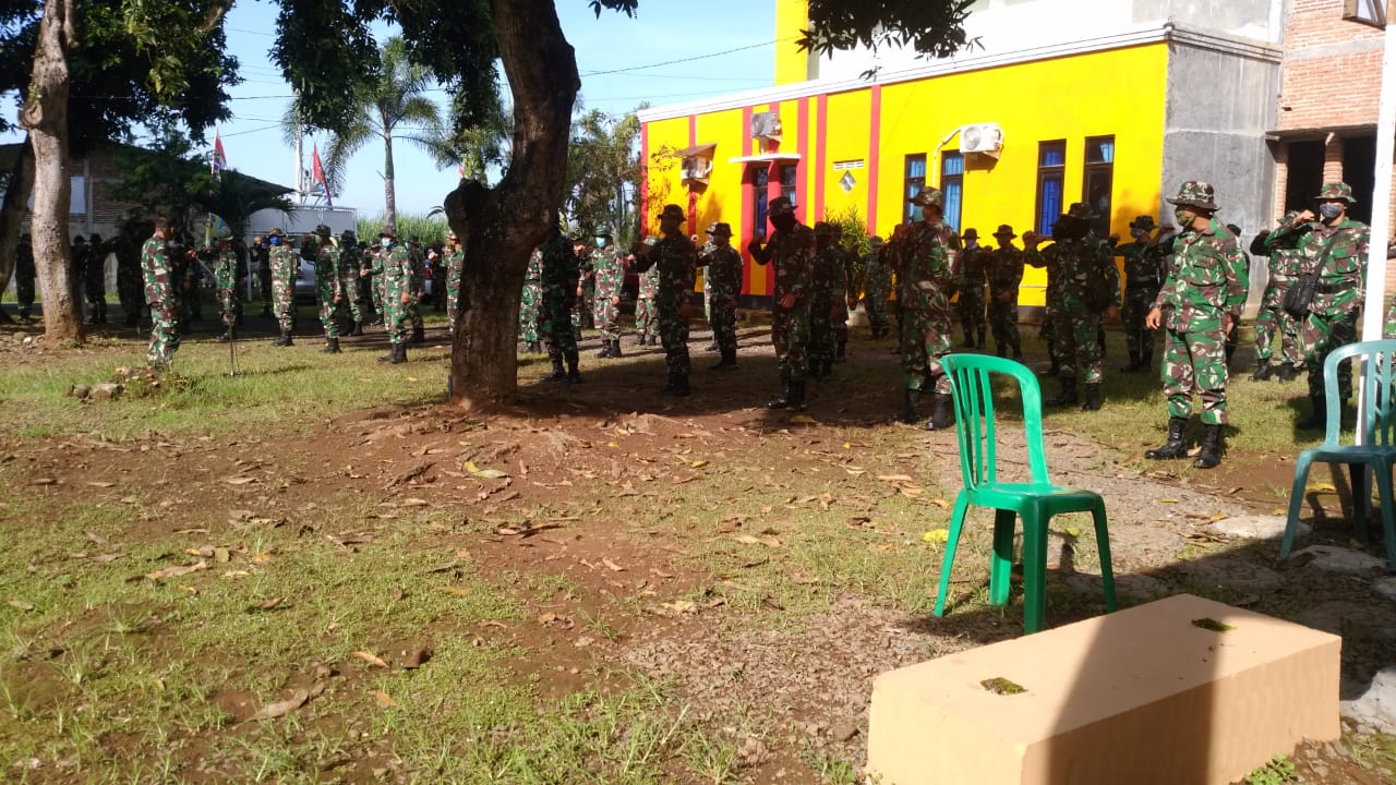 KUDUS, Jodanews.com – Kapten Inf. Herliyanto (Pasi Ops Kodim 0722/Kudus) Memberikan motivasi kepada Anggota Satgas TMMD reguler ke- 107 Kodim 0722/Kudus,sebelum melanjutkan kegiatan di lokasi TMMD ke-107 Desa Kedungsari Kecamatan Gebog Kabupaten Kudus, Sabtu (11/4/2020).