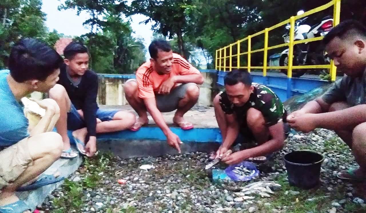 Cukup sederhana dan tidak perlu biaya, yakni sore seusai lelah kerja di sejumlah sasaran fisik TMMD, sejumlah anggota Satgas TMMD bersama beberapa pemuda di Desa Pantirejo, mencari ikan di parit-parit sawah yang memang cukup banyak bersamaan dengan musim panen padi.