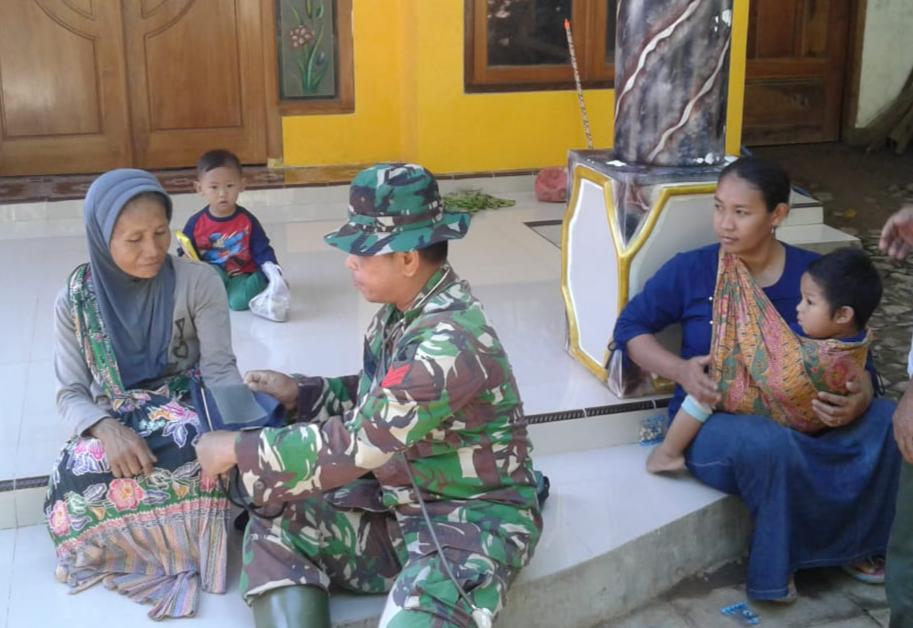 SITUBONDO, Jodanews.com – Petugas Kesehatan Satgas TMMD 107 Kodim 0823 Situbondo, yang dipimpin Pelda Budiharto setiap hari selalu setia memberikan pelayanan kesehatan untuk warga di sekitar lokasi TMMD ke-107 tahun 2020 yang dilaksanakan oleh Kodim 0823/Situbondo, Jumat, (10/4)