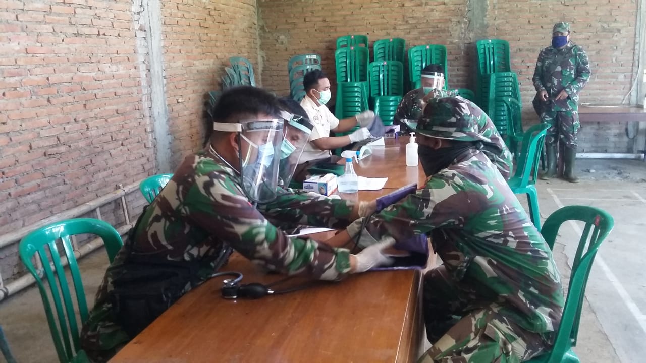 KUDUS, Jodanews.com – Anggota Satgas TMMD Reg-107 Kodim 0722/Kudus melaksanakan cek kesehatan dari RS Kartika Husada Kudus yang dipimpin langsung Karumkit Bant Lettu Ckm dr Wiryo Sudarno didampingi dokter batalyon 410/Alg Letda Ckm dr Bambang di aula balai Desa Kedungsari. Sabtu (11/04/2020)