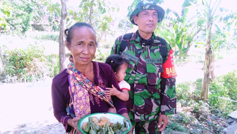 Adalah Mbah Suminah (67), warga Desa Tambakselo, dengan membawa jajanan mendekat ke lokasi TMMD dimana ada banyak warga dan TNI yang sedang bekerja. Setelah menyerahkan jajanan tersebut, Mbah Suminah memberanikan diri untuk minta foto bareng dengan Tentara.