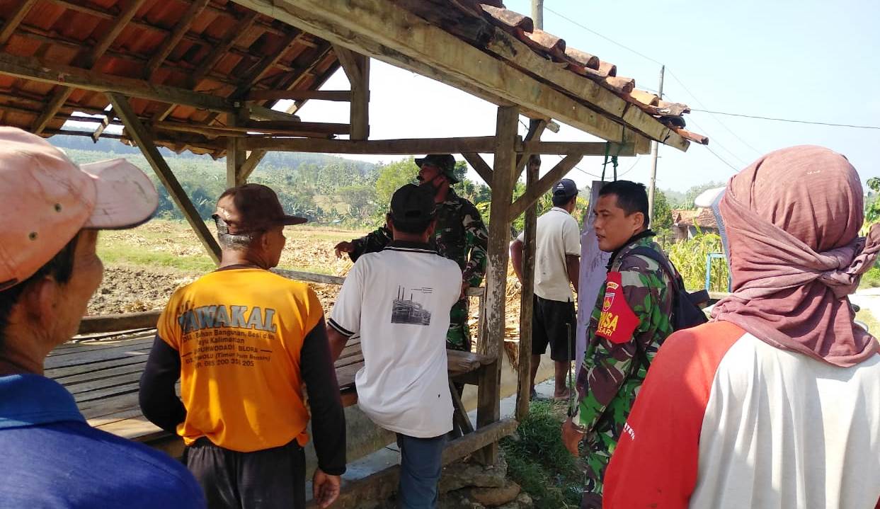 Tampak Babinsa Tambakselo, Serda Suparman bergabung dengan warga setempat memindah sebuah pos kamling yang akan direhab oleh Satgas bersama warga. ”Kami tidak ingin terlena soal pembukaan TMMD, beberapa sasaran fisik yang sudah diprogramkan di TMMD langsung dikerjakan,” tandas Serda Suparman.