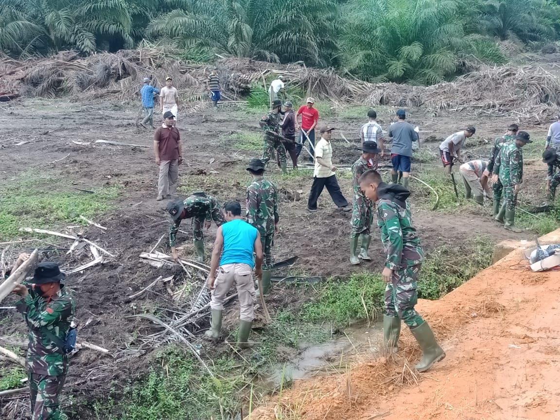 Untuk itulah dalam mendukung lingkungan embung tersebut, Warga bersama TNI dan Unsur lainnya bersama-sama melakukan gotong royong untuk membersihkan lahan sekitar embung dengan cara manual.