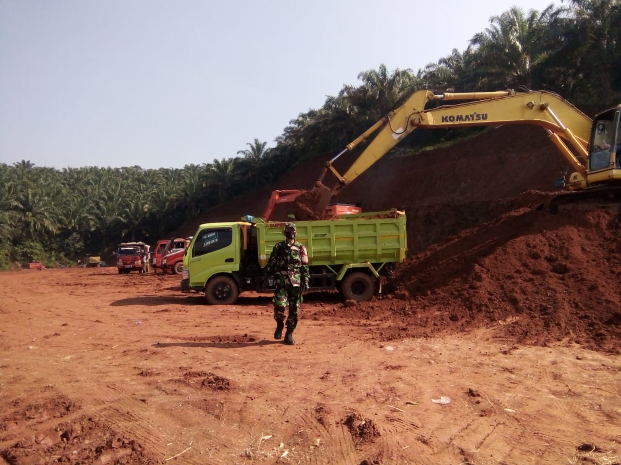 SUBANG, Jodanews.com- Personel Satgas TNI Manunggal membangun Desa (TMMD) ke-108 Kodim 0605/Subang, Sertu Ujang Sandra, dengan beberapa anggota lainnya, ikut serta mengawasi kerja alat berat Exavator, Loader dan Vibro serta mobil Dum Truck yang sedang melakukan penimbunan jalan penghubung antar dua Kecamatan yaitu kecamatan Serangpanjang dan kecamatan Cipeundeuy Kabupaten Subang. Sabtu (25/7/2020)
