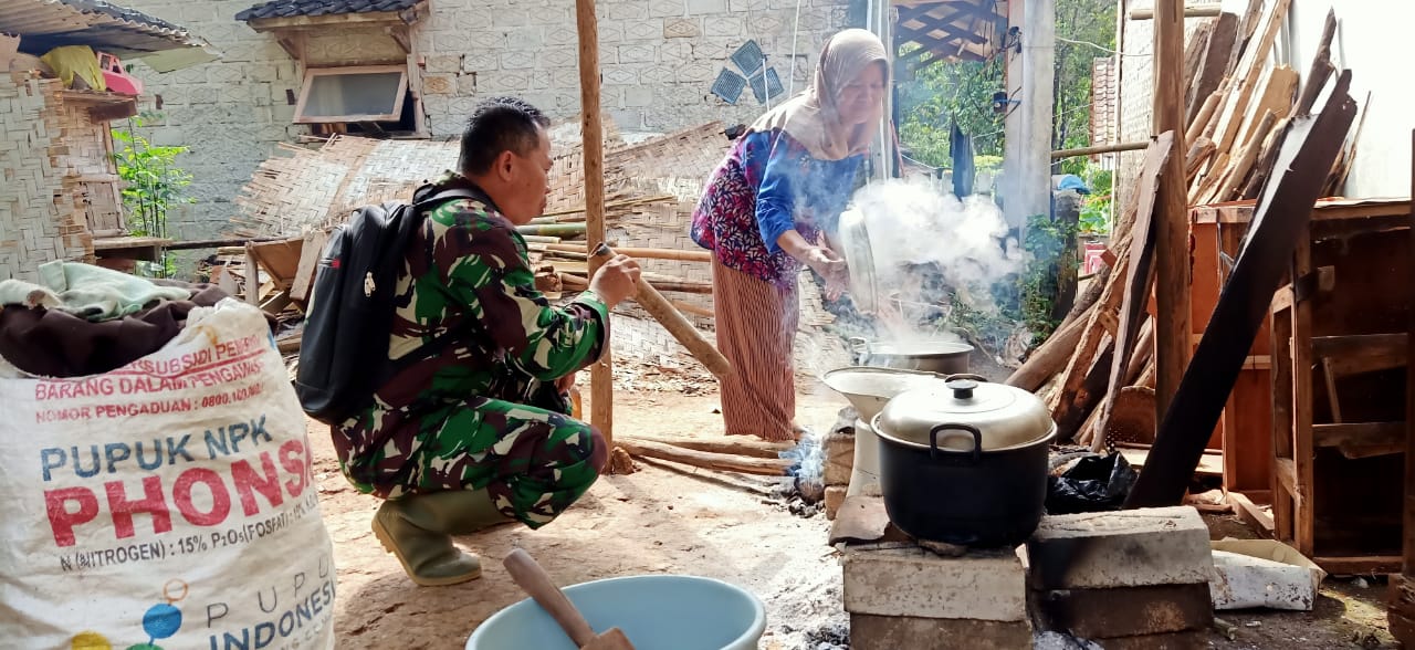 Sepertinya yang di lakukan Pelda Rimun salah satu Tim Kesehatan Satgas TMMD Kodim 0605/Subang ini, setiap harinya bangun pagi membantu ibu Cicih (45) warga Kedungsari yang rumahnya kena program Rutilahu TMMD 108 Kodim 0605/Subang TA 2020.