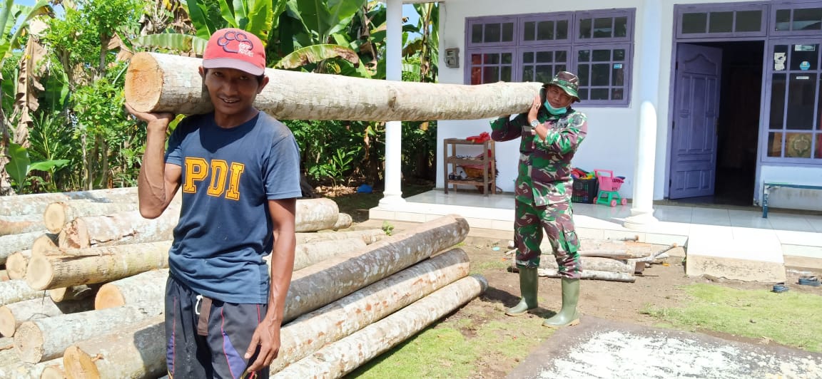 “Dengan tulusan iklas dalam membantu warga membawa kayu besar, ini menjadi tugas kami sebagai TNI yang mengabdi kepada rakyat,” ujar Seru Suin.