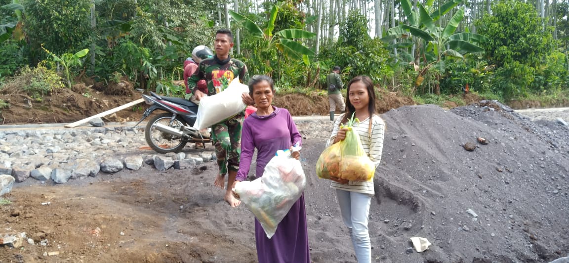Saat itu ia, membantu warga yang kesulitan membawa barang bawaannya, saat melintas di jalan tembus dua dusun yakni Dusun Gempol dan Dusun Tegal Ombo Desa Pandansari (jalan sasaran fisik program TMMD ke 108).