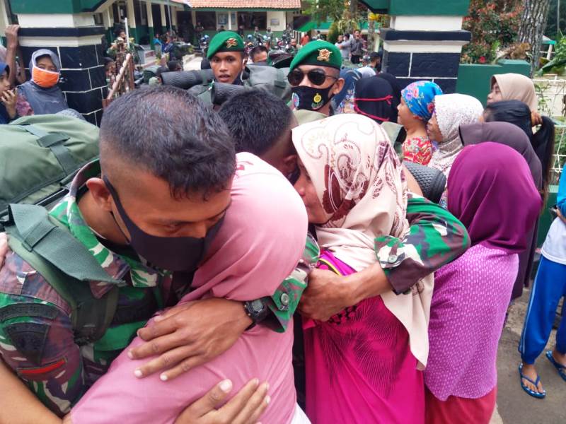 Banyumas – Banyak air mata mengiringi kepergian para TNI dari Desa Petahunan, Kecamatan Pekuncen, Kabupaten Banyumas, Jawa Tengah. Rabu (28/7/2020).