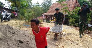 Adalah Ferdiawan (10), bocah yang tinggal di Dusun Kenteng RW 02 / RW 07, Desa Tambakselo. Di setiap harinya, sejak hari pertama pelaksanaan TMMD, selalu ada di tengah-tengah Satgas TMMD. Bahkan tidak jarang bocah itu juga membantu pekerjaan ringan yang ada di TMMD.