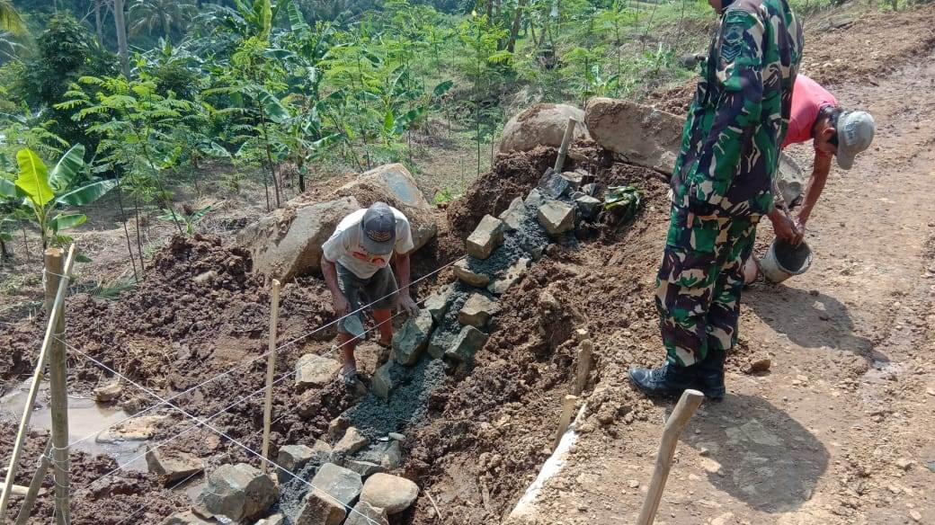 ”Cukup banyak talud yang dibangun di kanan kiri jalan yang saat ini dibangun oleh Satgas TMMD dan warga. Meski item pembangunan talud itu tidak masuk dalam program TMMD, tetap saja harus dibangun,” jelas Pasiter Kodim Banyumas, Kapten Inf. Putut Widodo. 2/7/2020.