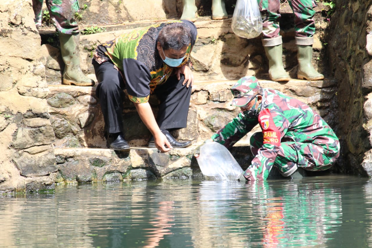 Lumajang,JodaNews.com – TMMD 108, Kapten Inf Hasanudin Danramil 0821/03 Senduro, memimpin acara penebaran ikan di desa Pandansari Kecamatan setempat, bersama Dinas terkait.