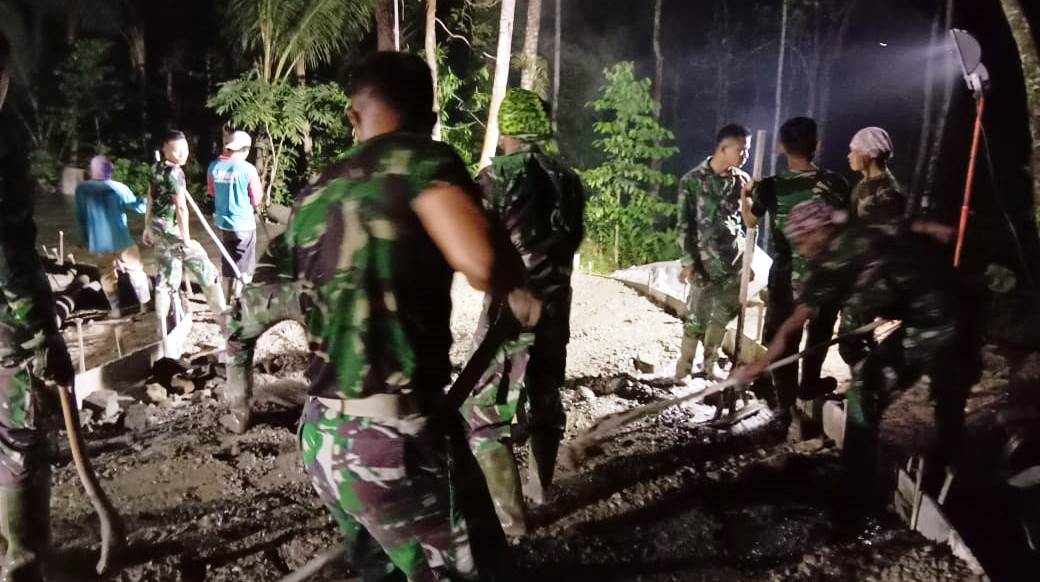 BANYUMAS – Sejumlah anggota Satgas yang melakukan lembur malam di pembangunan jalan, yang merupakan salah satu sasaran fisik TMMD Reguler ke-108 Kodim 0701/Banyumas, di Desa Petahunan, Kecamatan Pekuncen, Kabupaten Banyumas, Jawa Tengah, menyadari jika suatu saat lembur jumlah warga yang terlibat minim.