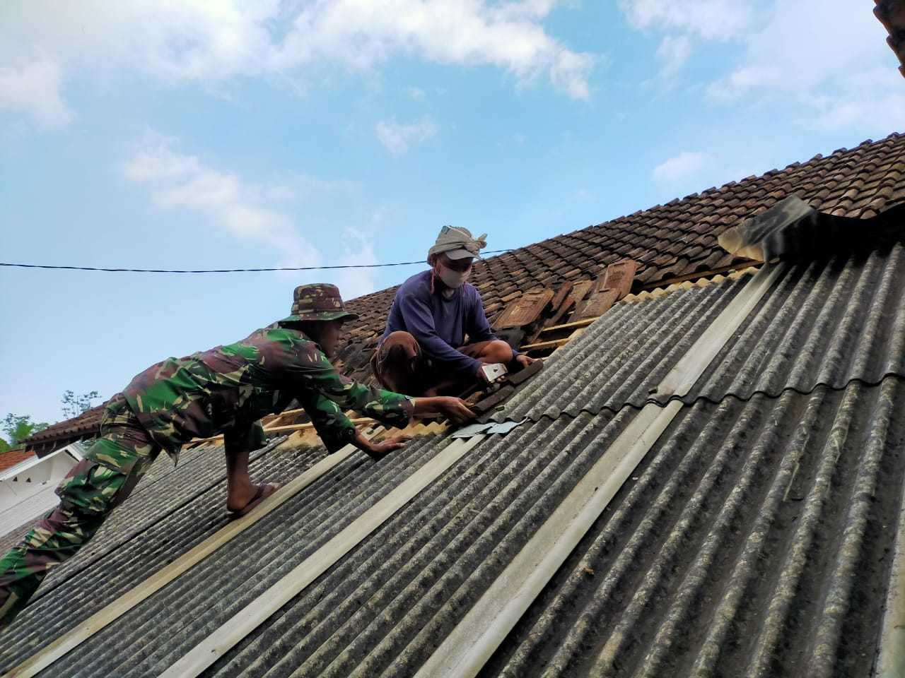 LUMAJANG, Jodanews.com – TMMD 108, Terlihat dua orang, satu diantaranya prajurit TNI, sedang berada di atas atap rumah, sasaran rutilahu (rumah tidak layak huni) di Desa Pandansari Kecamatan Senduro Kabupaten Lumajang Jawa Timur.