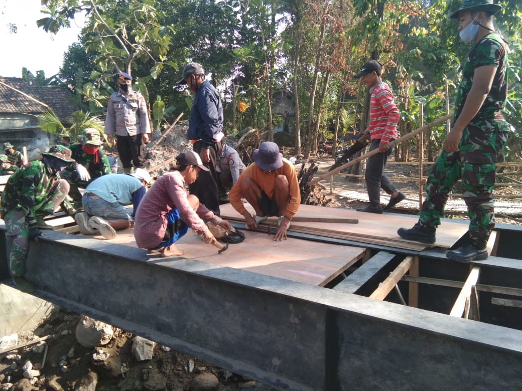 Sementara Danramil 09 Jetis Kapten Chb Reja Mulya saat di lokasi pembangunan jembatan menyampaikan targetnya Minggu depan kita sudah mulai pada pengecoran lantai jembatan.