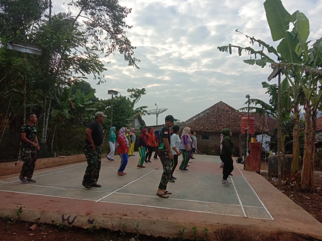 Home Uncategorized Jaga Kebugaran, Anggota TNI Ikut Senam Bareng Ibu-ibu Cijengkol