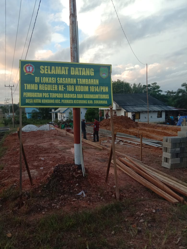 SUKAMARA, Jodanews.com – Kegiatan TNI Manunggal Membangun Desa Kodim 1014/Pangkalan bun Reguler ke 108 tahun 2020 kali ini fokus pada kabupaten Sukamara,baik itu fisik maupun non fisik.Pekerjaan fisik ada di dua tempat yaitu desa Bangun Jaya dan desa Natai Kondang,yang mana kedua desa ini masuk di kecamatan Balai Riam,kabupaten Sukamara.Sedangkan non fisik yang di antaranya adalah