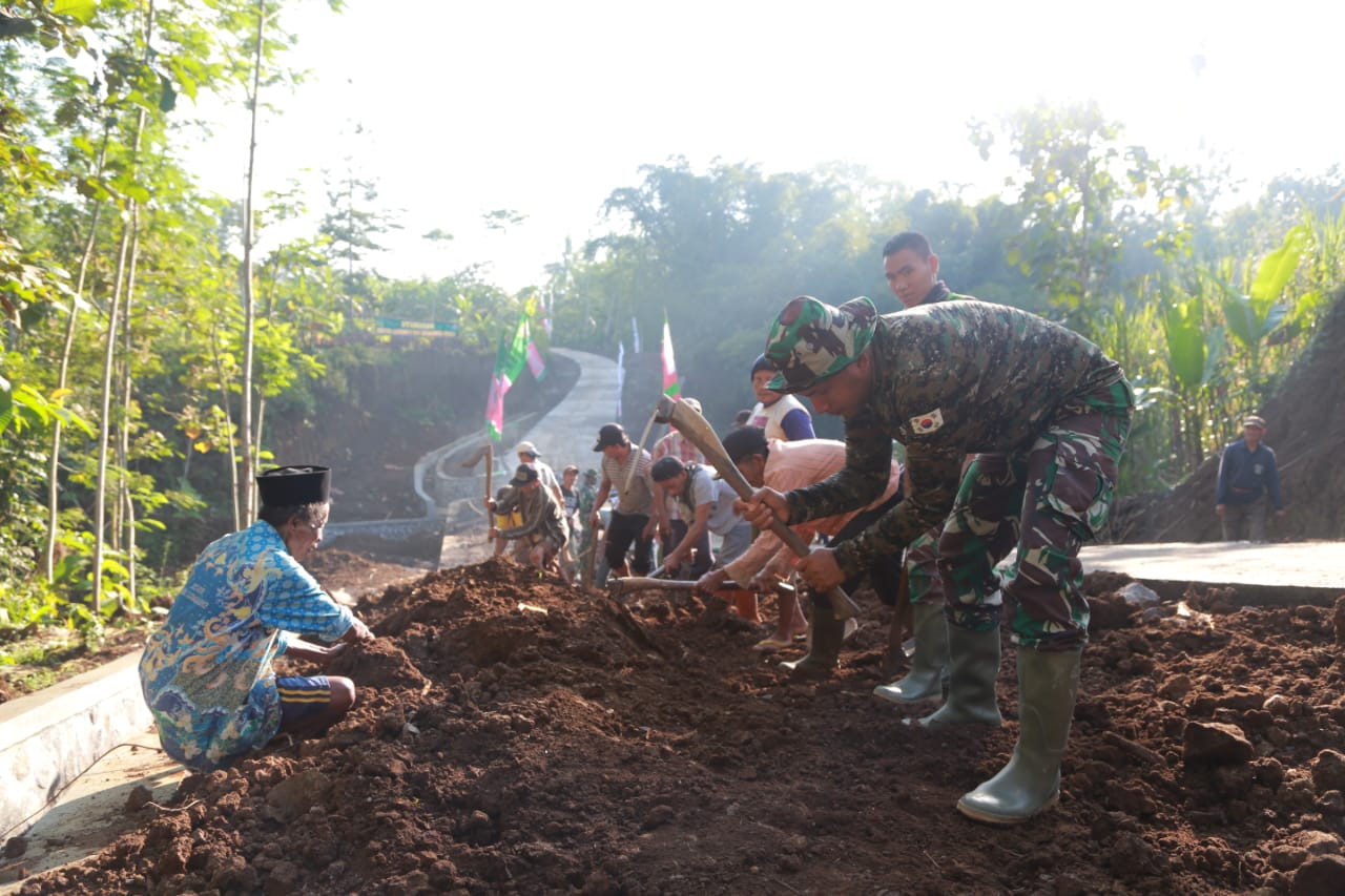 Tampak begitu semangatnya satgas dan warga bekerja di lokasi jalan baru yang menghubungkan Dusun Gempol dan Tegal ombo, Desa Pandansari.