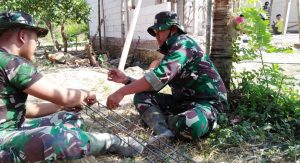 Di salah satu sasaran fisik perehaban sebuah Mushola di Dukuh Gadon, Desa Tambakselo misalnya. Beberapa anggota Satgas, terus melakukan berbagai pekerjaan, diantaranya merangkai besi kolom untuk penulangan tiang mushola.