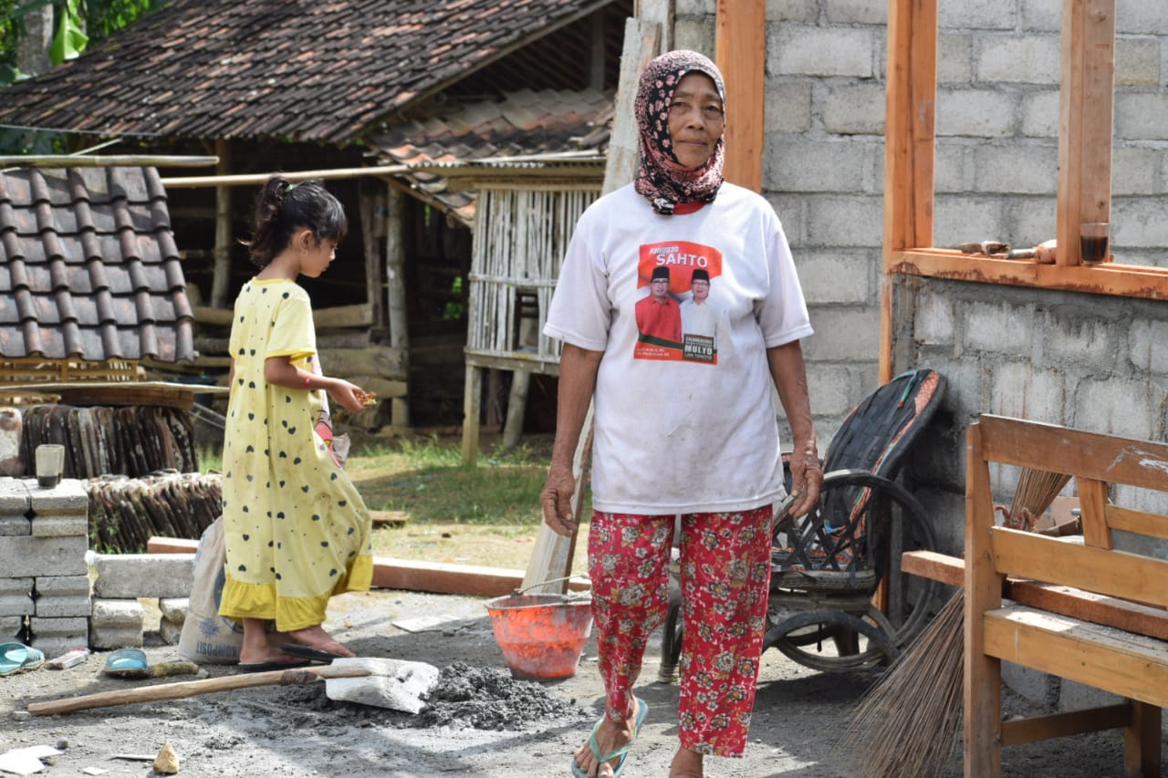 Dengan bekerjanya para Satgas TMMD untuk membangun rumahnya ini, bukan berarti Wiji harus berdiam diri hanya menyaksikan dan acuh tak acuh dengan apa yang diperbuat oleh Satgas. Dirinyapun bahkan tak tinggal diam ikut serta membantu bekerja para Satgas meskipun sambil menemani kedua cucunya kerena dengan harapan rumahnya dapat segera selesai dan dapat ditempati dengan layak.