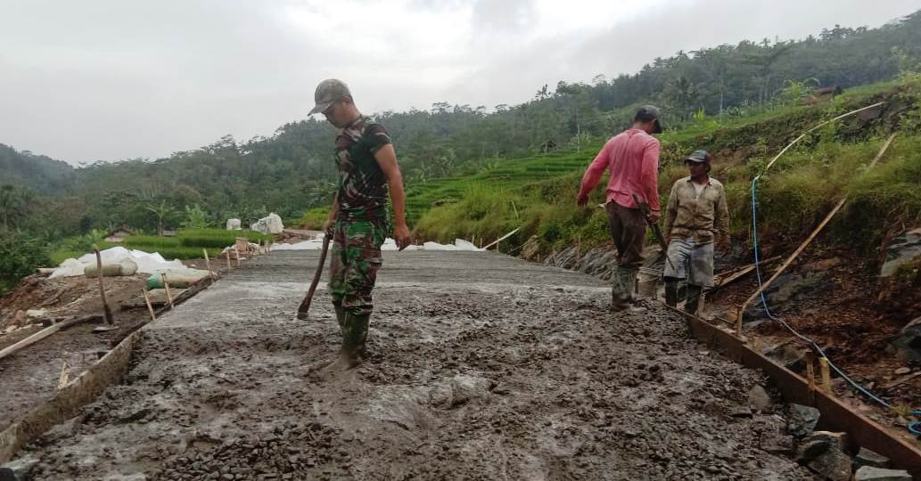 ”Dengan sisa waktu TMMD yang tinggal 25 hari, dalam situasi normal saja pengecoran jalan itu tidak akan selesai. Untuk itu saya sepakat hausa dilakukan lembur agar jalan TMMD itu selesai sebelum penutupan TMMD,” ungkap Pasiter Kapten Inf. Putut Widodo. (Ags)