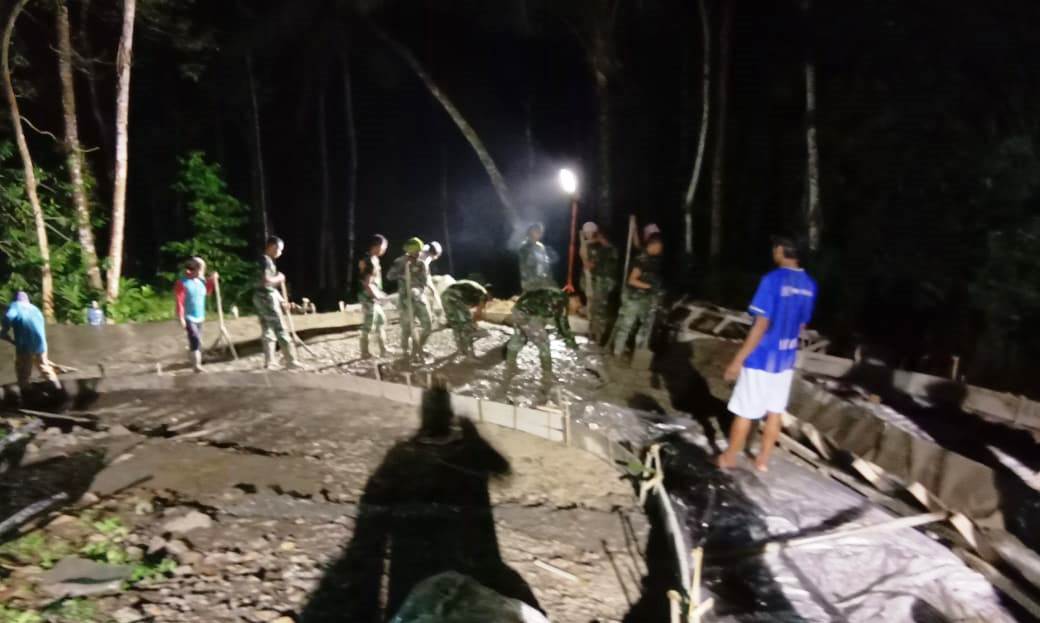 BANYUMAS – Menyusul adanya pinjaman lampu penerangan dari Pemda Banyumas, hasil lembur malam dalam pengecoran jalan, yang merupakan salah satu sasaran fisik TMMD Reguler ke-108 Kodim 0701/Banyumas, di Desa Petahunan, Kecamatan Pekuncen, Kabupaten Banyumas, Jawa Tengah, cukup maksimal.