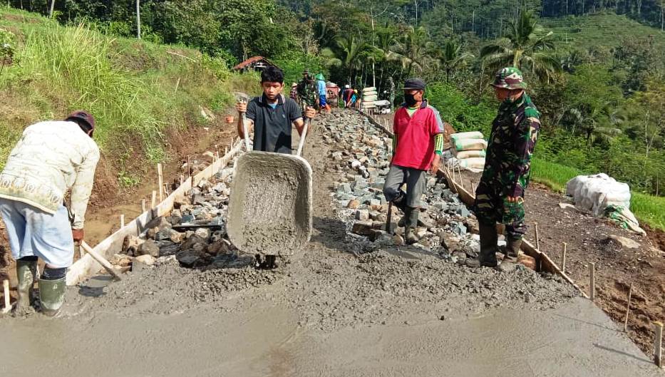 BANYUMAS – Memasuki hari ke empat pengecoran jalan di Desa Petahunan, Kecamatan Pekuncen, Kabupaten Banyumas, Jawa Tengah, salah satu sasaran fisik TMMD Reguler ke-108 Kodim 0701/Banyumas, mulai melambat.
