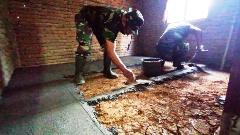 “Kami melakukan plester dan pengacian lantai TPQ Daruththolibin, memanfaatkan sisa semen dan pasir dari pembangunan jalan beton TMMD 1,8 kilometer,” ungkapnya.