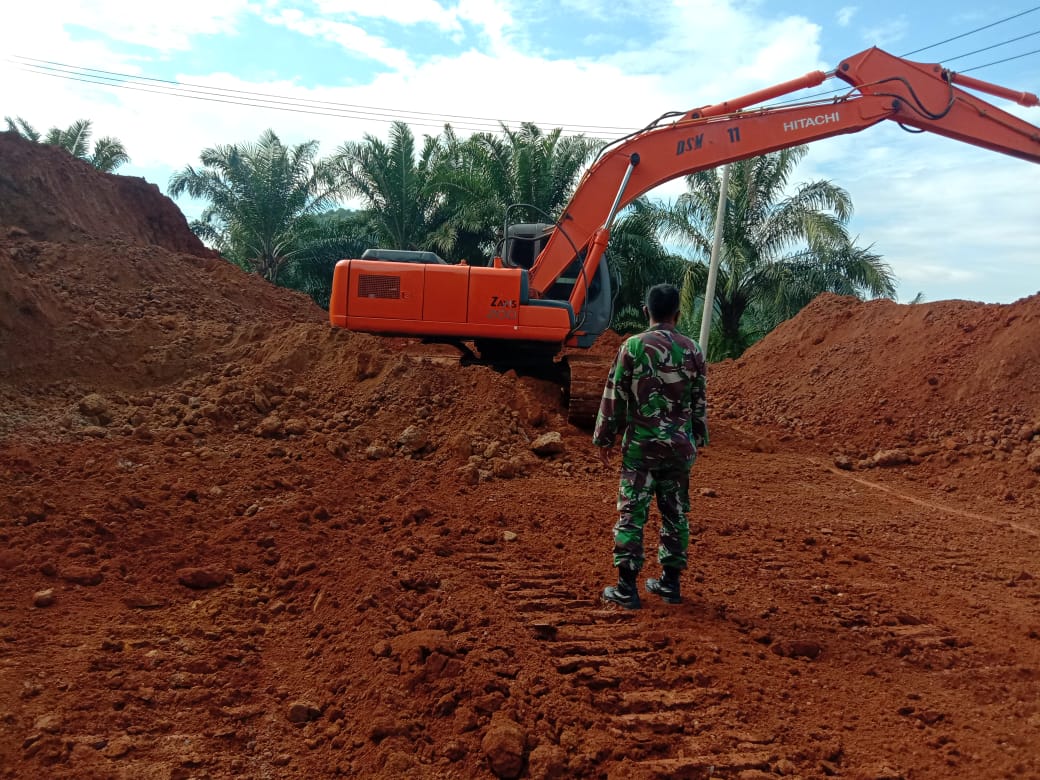 ” kami mengawsi alat berat yang bertugas untuk pembongkaran bukit dan pemadatan jalan” ujar, Danramil 0504/Sgl Kapten Inf Ernawan, Senin (6/7).