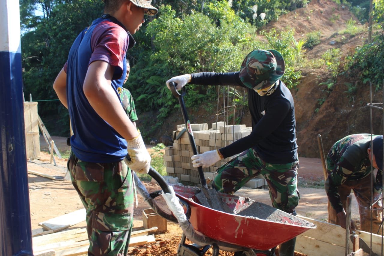 Serda Tatar dalam pelaksanaan kerja tidak sendiri ada dari anggota satgas TMMD dan warga yang turut membantu dari mulai awal pengerjaan sampai dengan sekarang. Hambatan utama di lapangan adalah saat ini curah hujan , namun tim yang di sasaran dan warga tetap masih menemani dalam kerja. Tempat kerja bagian rabat beton saat ini sudah mengalami kemajuan, warga secara bergantian , pak rubi, salah satu warga yg pada hari ini membantu. (Pendim 1203)
