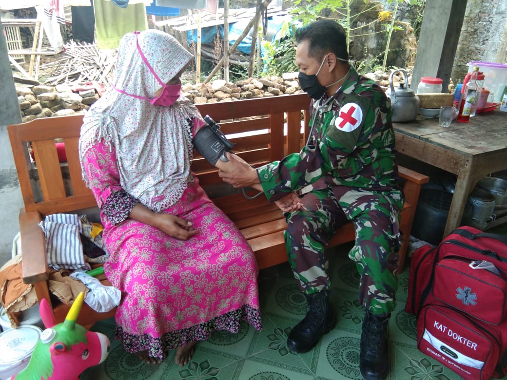 Pelda Sadi seorang TNI tenaga medis poskes kartika sewon, telah berbaur dengan masyarakat dan mensosialisasikan tentang budaya hidup sehat serta mencegah pandemi covid-19.