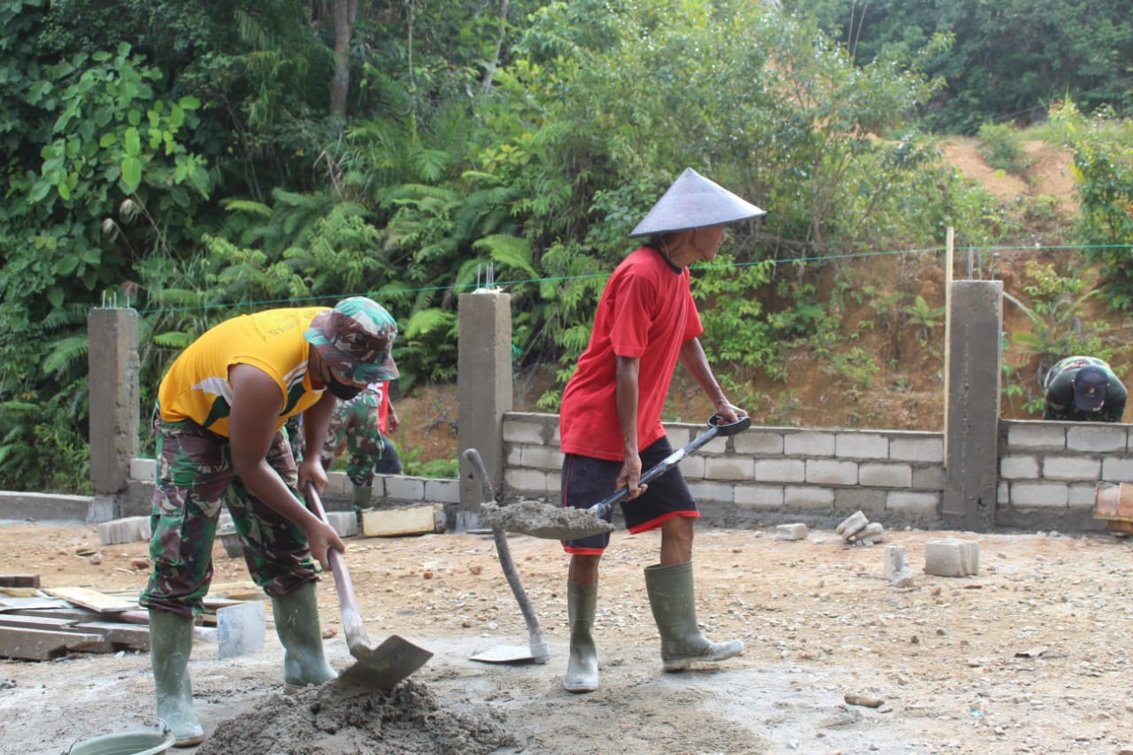 Pada sasaran pembangunan pagar sampai saat ini masih dalam pengerjaan, selain anggota yang tergabung dalam satgas ada juga warga dari desa beringin gayo, kecamatan tumbang titi, Baik anggota satgas maupun warga yang bantu dalam pengerjaannya, hingga kini tetap antusias, dengan harapan cepat terselesaikan. Salah satu warga diantaranya Bapak pian (48) karena setiap hari bertemu baik di rumah maupun di lokasi kerja jadi tidak sungkan lagi dalam bergaul dan berseda gurau,karena memang anggota TMMD di sini berusaha untuk membaur. (Pendim 1203)