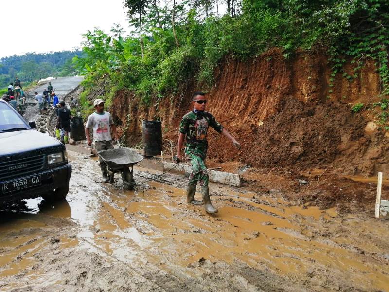 Home Kodim Banyumas Tak Peduli Badan Berlumur Lumpur dan Semen, Prada Dade Total di TMMD...
