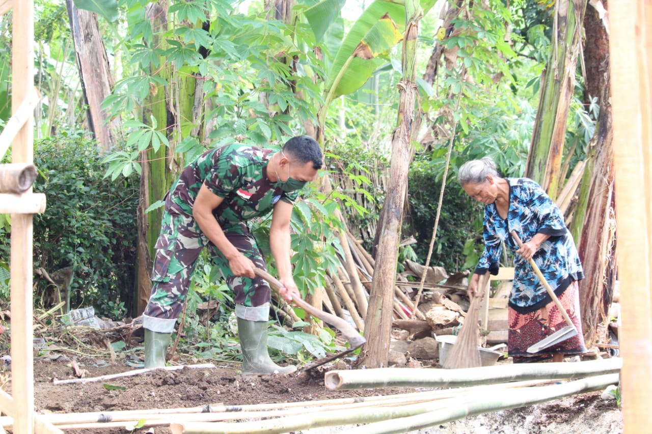 Tak Rasakan Lelah, Kopda Mastoin Bantu Bersihkan Pekarangan Rumah Warga