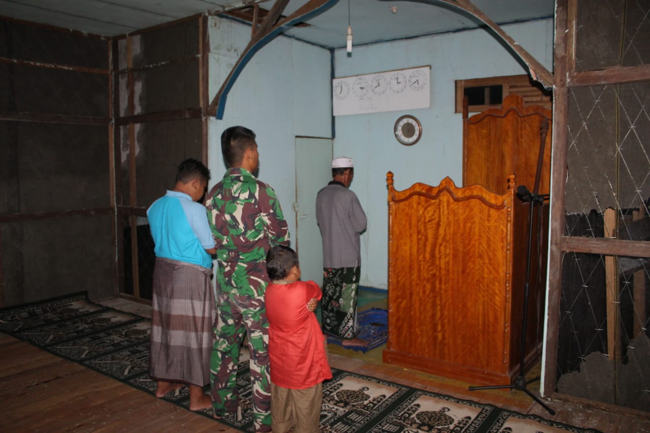 KETAPANG, jodanews.com- Meski tidak termasuk dalam program fisik maupun non fisik TMMD Reguler ke-108 Kodim 1203/Ktp, Prajurit TNI anggota Satgas TMMD yang satu ini, Prada Firmansyah, disela kesibukannya dalam pengerjaan di sasaran fisik TMMD, tidak pernah lalai menjalankan kewajibanya sebagai umat muslim,hal ini terekam saat ini melaksanankan sholat magrib berjama’ah di moshola At-Taqwa Desa Beringin Rayo Kec. Tumbang Titi, Kab. Ketapang.