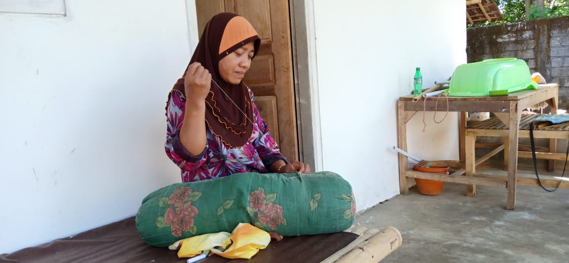 Dia menjahit guling bukan sebagai alas kepala saat tidurnya sendiri, namun, saat disapa dan ditanya untuk siapa, perempuan berhijab itu menjawab untuk Satgas TMMD.