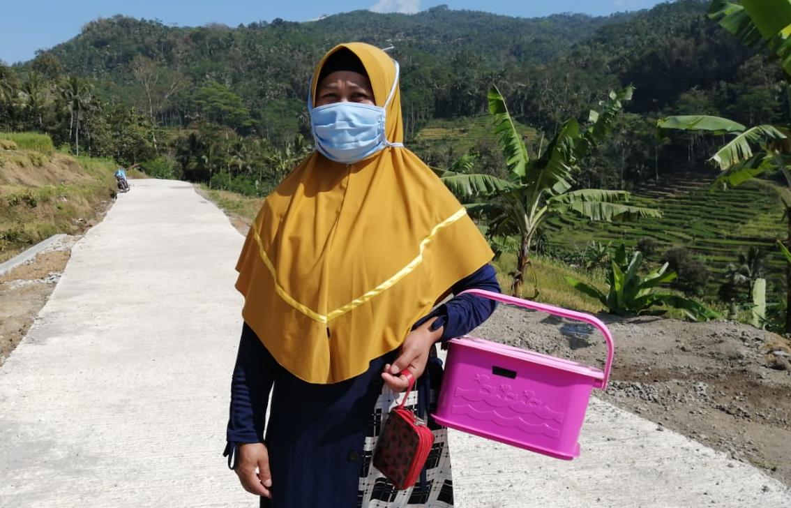 BANYUMAS – Mba Atun (43), warga Dukuh Semingkir RT. 02 RW. 03, Desa Petahunan, Kecamatan Pekuncen, Kabupaten Banyumas, Jawa Tengah, mulai menangguk rezeki setelah jalan di desanya yang menghubungkan banyak lokasi wisata (salah satunya Curug Nangga).