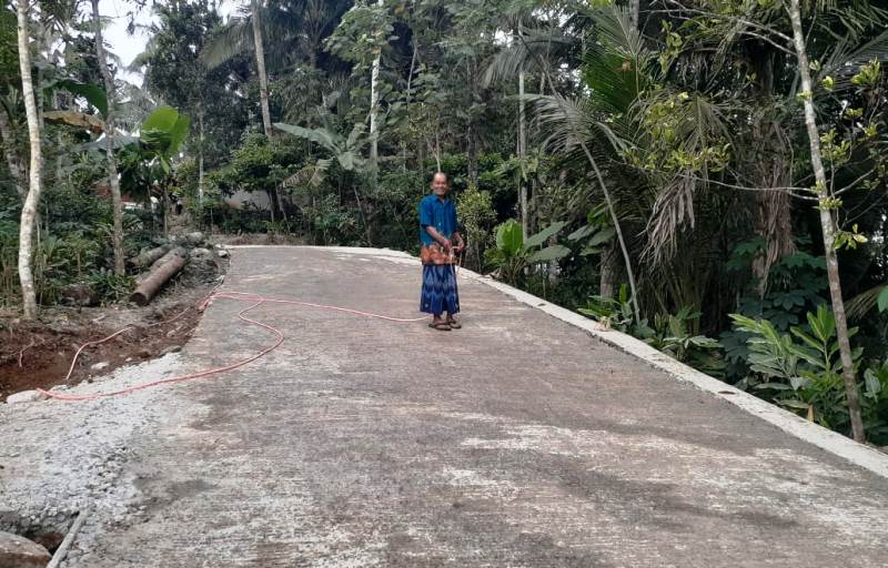Banyumas – Sama seperti warga Dukuh Semingkir, Desa Petahunan, Kecamatan Pekuncen, Kabupaten Banyumas, Jawa Tengah, Kasmaja (74), RT. 05 RW. 04, juga menyatakan menyiram jalan beton hasil TMMD Reguler 108 Kodim 0701 Banyumas, di sekitar depan rumahnya.