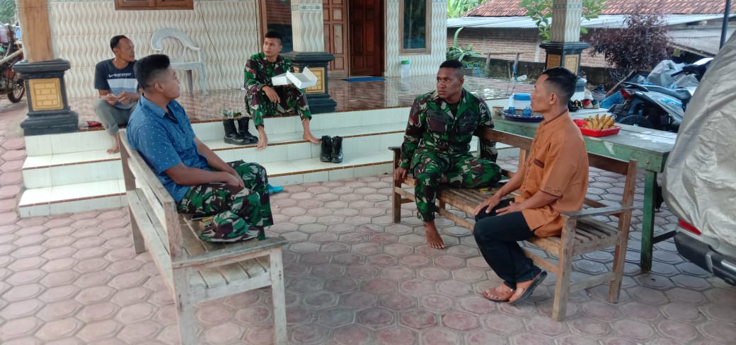 Tulungagung,- Satgas TMMD 108 Kodim 0807/Tulungagung tidak hanya memprioritaskan pada pembangunan fisik perabatan jalan saja tetapi juga melakukan pengerjaan Non Fisik yaitu dengan melakukan komunikasi pendekatan dengan masyarakat desa Nngepoh.Seperti yang dilakukan oleh Prada Agus dan kopda Ahmad dari Yonif 511/Badak Hitam .