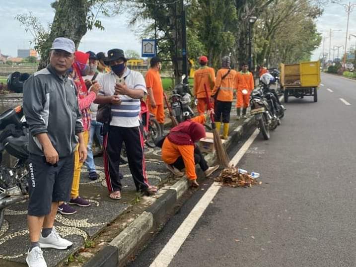 Minggu (16/8) pagi, tampak Sekretaris Daerah Muba Drs Apriyadi MSi juga turut ikut gotong royong bersama pasukan orange di sepanjang jalan protokol Wahid Udin.