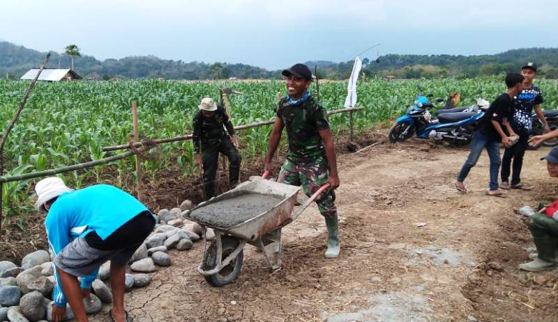 Pemuda Kalinusu Brebes Tak Pilih-pilih Pekerjaan Bantu Satgas TMMD Reguler