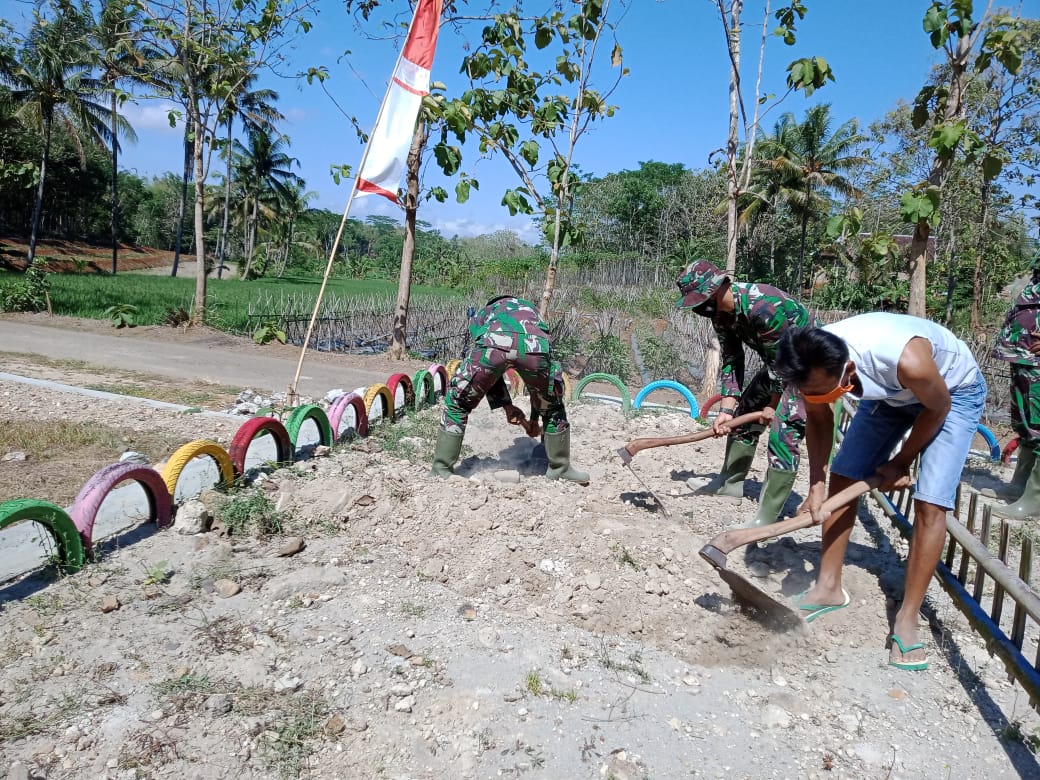KARANGANYAR – Satgas TMMD Reguler ke-109 Kodim 0727/Karanganyar bersama warga masyarakat Sonosari mencoba belajar berlatih untuk menanam tanaman empon – empon yang nantinya akan berguna bagi masyarakat sekitar.
