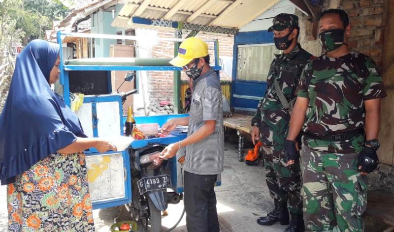 Brebes – Seluruh pelaku ekonomi keliling yang masuk ke Desa Kalinusu, Kecamatan Bumiayu, Kabupaten Brebes, Jawa Tengah, mendapatkan rezeki dengan kehadiran ratusan anggota Satgas TMMD Reguler 109 Kodim 0713 Brebes, yang sedang membangun infrastruktur desa tersebut.