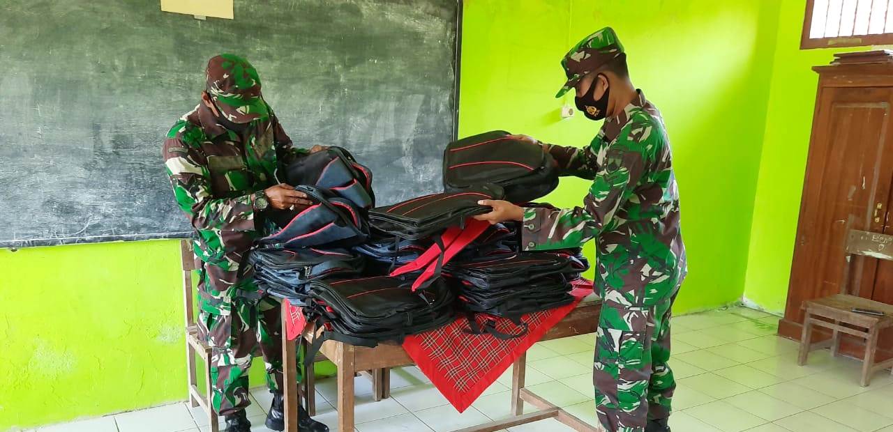 Dalam program TMMD kali ini juga Kodim 0715/Kendal memberikan bantuan kepada anak-anak Dusun Pening, bantuan alat sekolah tersebut sudah dibawa dan disiapkan oleh Anggota Satgas TMMD supaya tidak ada yang kekurangan dan terlihat rapi.