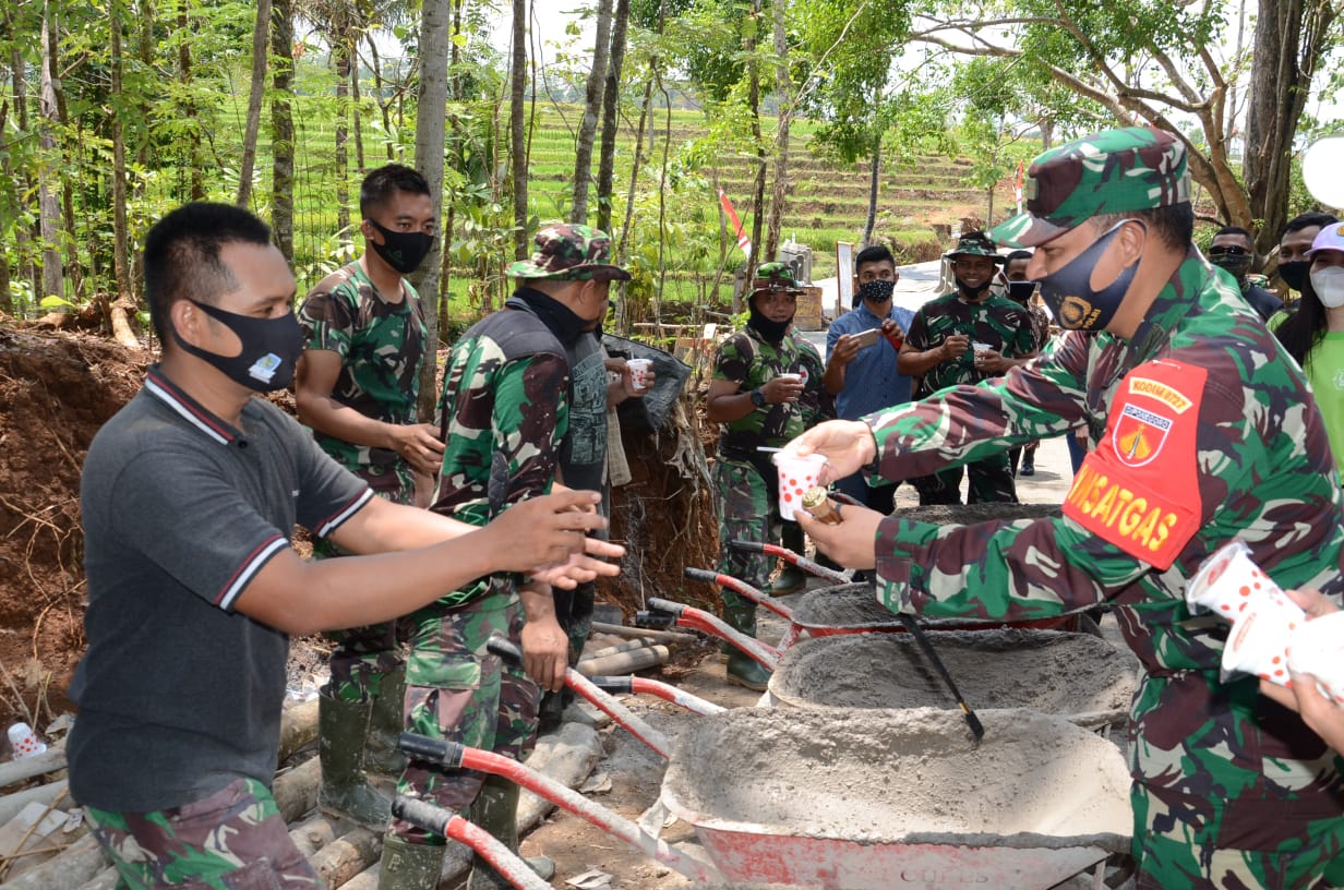 KARANGANYAR – Untuk lebih memberikan semangat kepada masyarakat dalam mengerjakan program fisik TMMD Reguler Ke-109 Kodim 0727/Karanganyar. Dandim 0727/Karanganyar membagikan susu kemasan kepada warga dan sejumlah anggota Satgas TMMD 109 yang berada dilokasi pembangunan sasaran fisik TMMD.