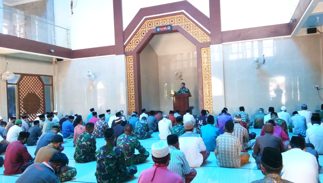 Lamongan – Anggota satgas TMMD 109 Kodim 0812/Lamongan mengisi Khotbah Jumat di Masjid Al-Ittihad pada Jumatan kali ini