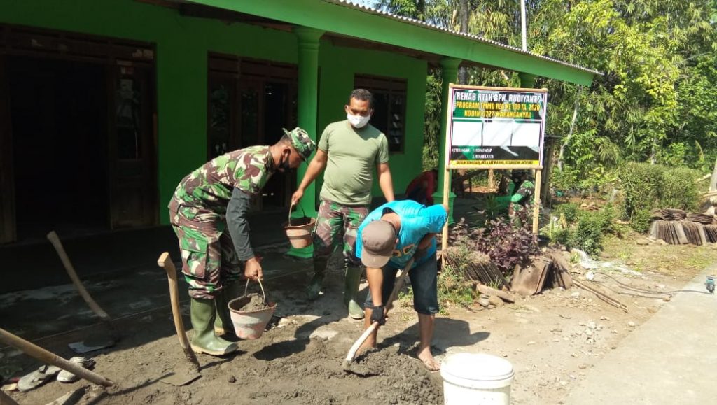 Karanganyar – Satgas TMMD Reguler ke 109 Kodim 0727/Karanganyar di desa Jatiwarno terus bekerja tak ada hentinya bersama warga,sasaran yang di kerjakan yaitu pengerjaan jembatan,pengecoran jalan serta RTLH.selain itu anggota satgas lainnya sedang menuntaskan sasaran tambahan RTLH lainnya yang sebentar lagi juga akan rampung