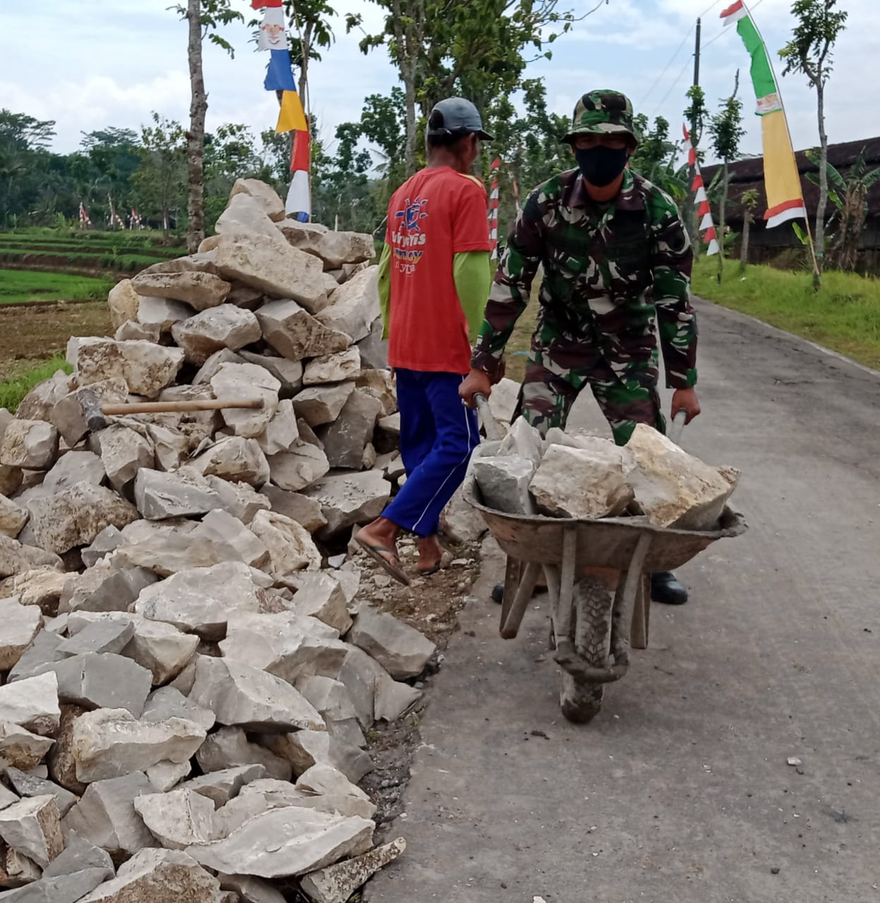 KARANGANYAR – Gerobak dorong menjadi andalan bagi Satgas TMMD Reguler Ke-109 Kodim 0727/Karanganyar. Hal itu digunakan dalam mengangkut material di lokasi TMMD. Seperti angkut batu untuk pondasi penbuatan Prasasti di Sasaran TMMD Reguler Ke-109 Kodim 0727/Karanganyar di Dusun Trugo, Desa Jatiwarno kali ini.