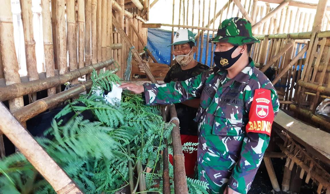 Kegiatan blusukan, komunikasi sosial maupun anjangsana itu terus dilakukan memanfaatkan sisa waktu TMMD. Seperti yang dilakukan Sertu Eko Rudi, salah satu satgas belajar ilmu beternak kambing.